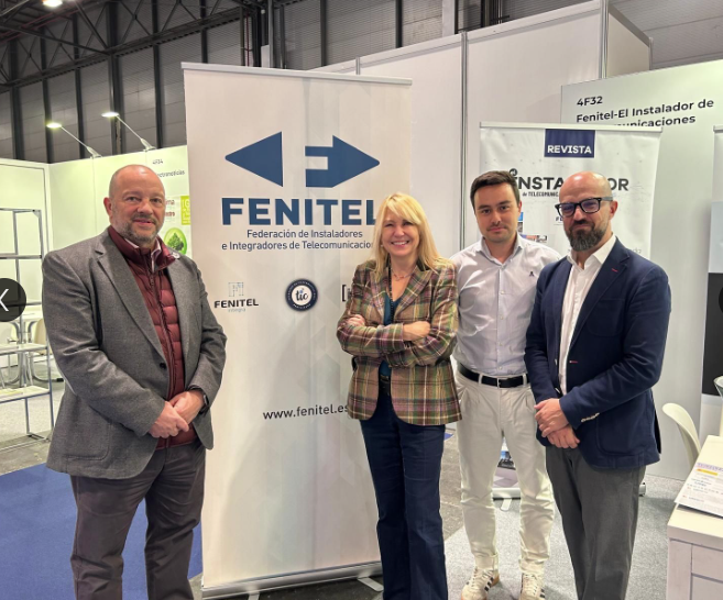 En las fotografías, nuestra directora, Rocío Ardura junto a nuestro ejecutivo de cuentas Jose Luis Fernandez y representantes de FENITEL (Federación Nacional de Instaladores e Integradores de Telecomunicaciones) y Somostelecos.Madrid entidades ambas con las que colaboramos entusiastamente.